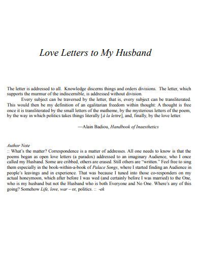 Here are some examples of what you can write about.Short Love Letter to My Husband Word Format Download hubpages.com | When it comes to professing our love for the ones we love the most, we usually get short of words.Enthusiastic downhill skier. You are so going to be worth it. It's been long since I received your last letter. May show some signs of use or wear. It was dead. Vows to my husband. Find all the books, read about the author, and more. When I'm sad and you hold my hand, you make me happy. 1669, being but one moneth, and one day" "In Reference to her Children" "To My Dear and Loving Husband" "Another" and "Another (II)" "A Letter to Her Husband, absent upon Publick Employment" "The Author to Her Book" "The Prologue" "Dialogue Between Old England and New".It's easier to work on forgiving him when I can still be mad at you, the other woman, the b*tch who slept with my husband. Such a cute idea.