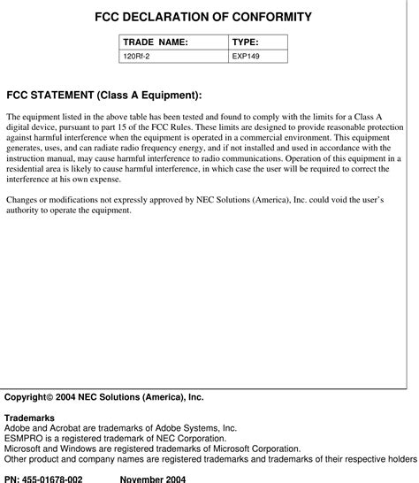 Nec 120rf-2 User Manual Download Now Free Installation And Service Manual